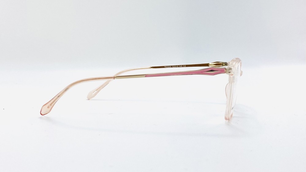 نظارة طبية نسائية بلاستيك عين القطة (كات آي) اللون شفاف وردي مقاس 52 رقم الموديل 2045C2